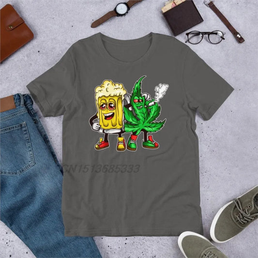 420 Pot Leaf Marijuana Bong Beer and Weed Drunk Cannabis Women T-shirts Funny Shrimp Injured Graphic Printed Tees Cotton Tops