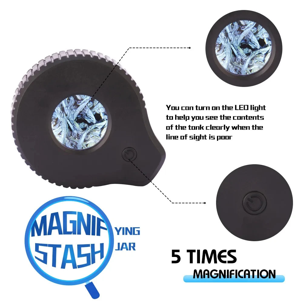 HAPPY Tobacco Glass Jar with Magnifying Lid and Light Transparent Storage Container Clear Stash Herb Jars
